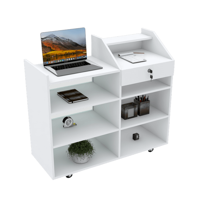 BALCÃO CAIXA VITRINE COM GAVETA E RODINHAS M441.B (LOJA) 100% MDF MUNDI MOVEIS BRANCO