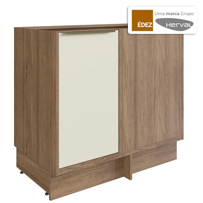 Balcão Canto Cozinha Modular 100% MDF Édez Uno, 1 Porta, Off White e Louro Freijó, 92,5 cm
