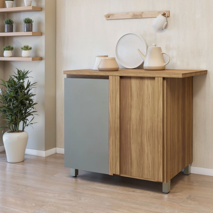 Balcão Canto Direita Esquerda 1 Porta Rainha 92X52Cm 100% Mdf Nature/Verde