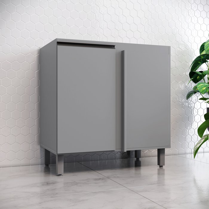 Balcão Canto Reto 1 Porta Belize Henn Cinza