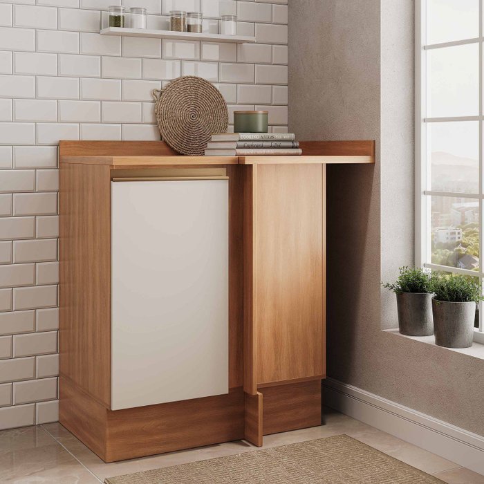 Balcão Canto Reto 1 Porta com Tampo Aroeira CabeCasa MadeiraOriginals