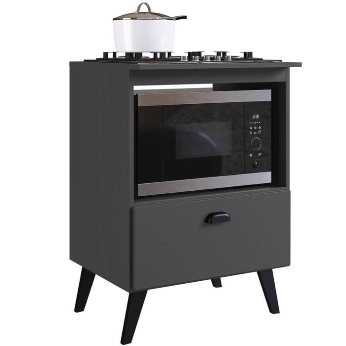 Balcão com Porta Basculante para Forno e Cooktop 4 Bocas Bogotá Grafite