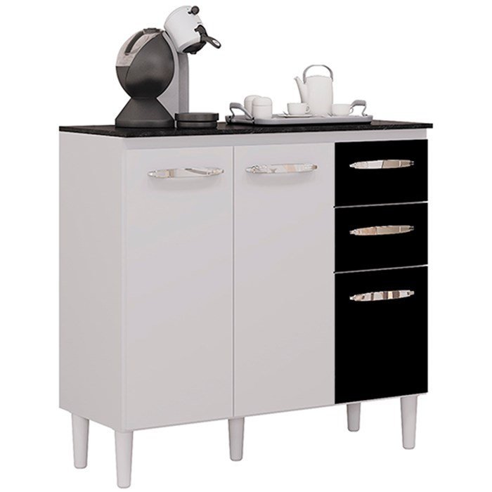 Balcao com Tampo 90 Cm 668 Branco Preto Poqq