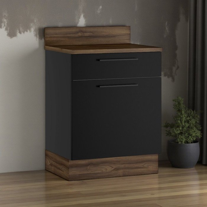 Balcão Cozinha em Aço 1 Porta Direita 1 Gaveta 65cm com Tampo Rodapé PVC Exclusive Itatiaia Grafite/Preto Matt