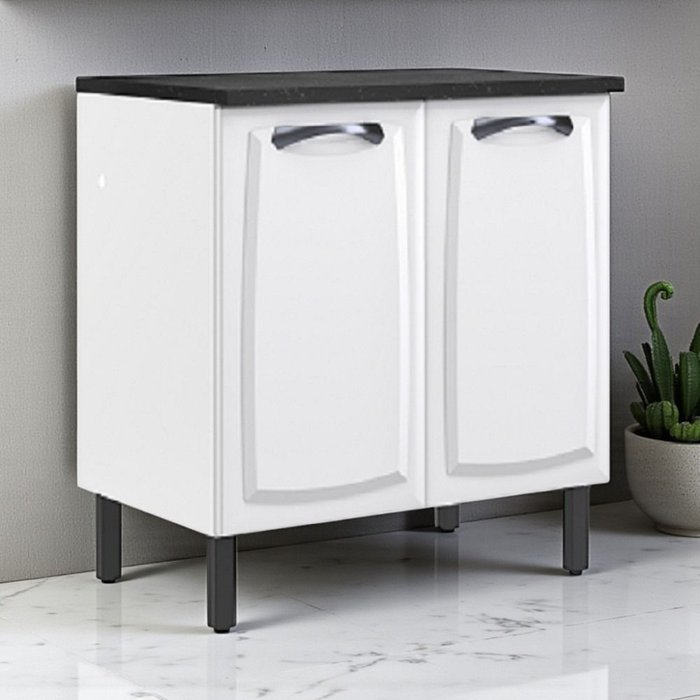Balcão Cozinha em Aço 2 Portas 80cm com Tampo New Premium Itatiaia Branco/Nero Marquina
