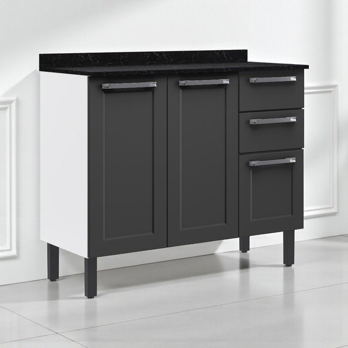 Balcão Cozinha em Aço 3 Portas e 2 Gavetas 105cm com Tampo Florença Itatiaia Grafite/Branco