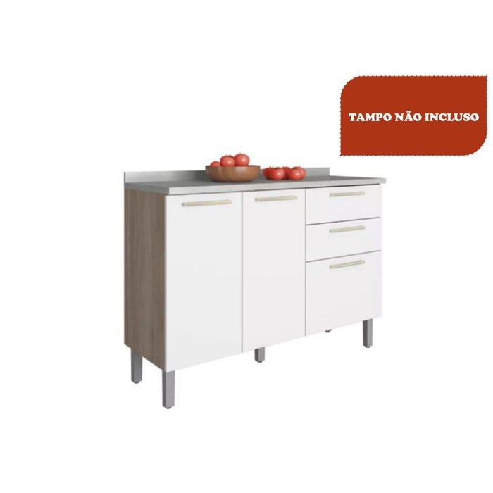 Balcão Cozinhas Itatiaia Star SEM TAMPO - 3 Portas e 2 Gavetas - Aveiro c/ Branco Aveiro c/ Branco