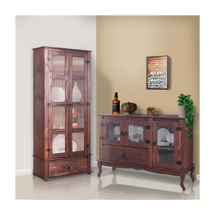 Balcão Cristaleira Madeira Rustica Imbuia Denk