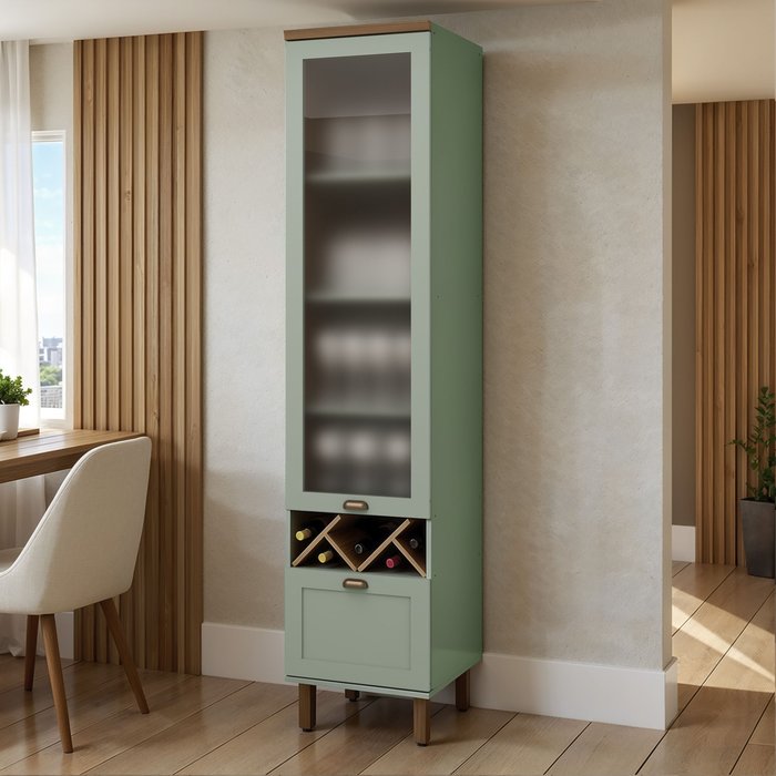 Balcão Cristaleira Para Cozinha com Porta de Vidro Provençal Iluminata Verde Mint