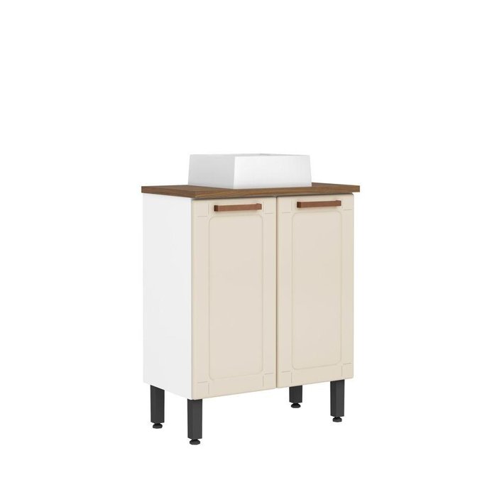 Balcão de Aço e Cuba C Pés Banheiro 2 Portas Areia Bertolini Areia/Branco