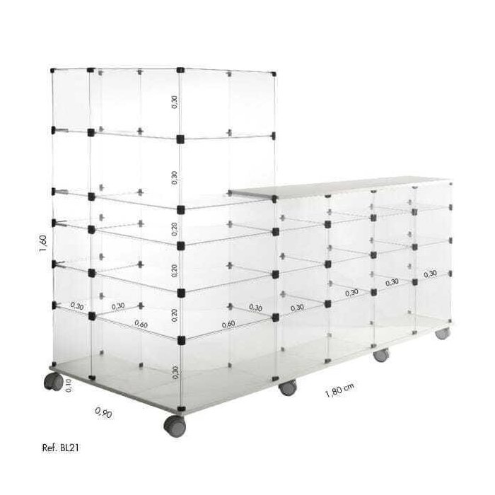 Balcão de Atendimento L Modulado em Vidro - 1,80 X 1,60 X 0,90