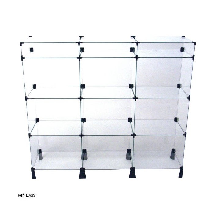 Balcão de Atendimento Modulado em Vidro com Porta Bijuteria - 1,20 x1,10 x 0,30 Conectivo Preto, Vidro incolor