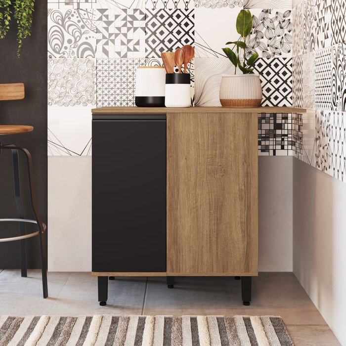 Balcão de Canto Cozinha Laura 90cm 01 prateleira LA1115 Delmarco - Delmarco Mel/Preto Touch Mel/Preto Touch