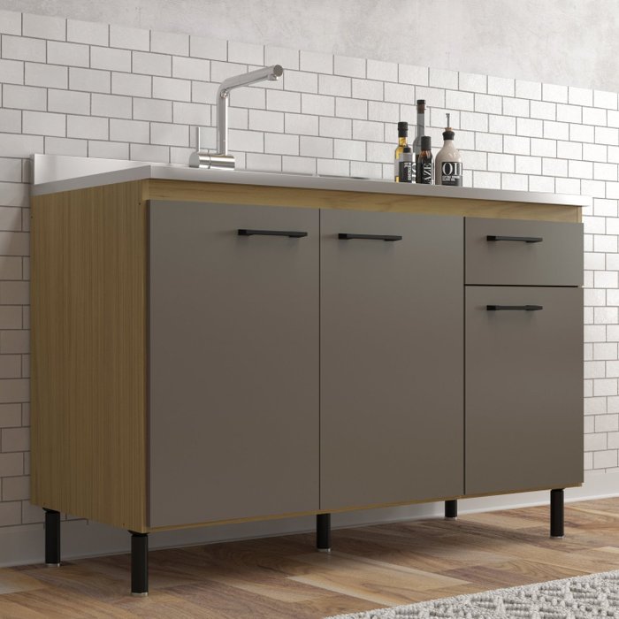 Balcão de Cozinha 120cm 3 Portas 1 Gaveta Maysa Canary/Damasco