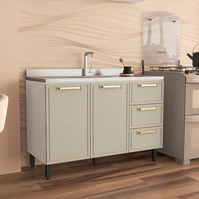 Balcão de Cozinha 2 Portas 3 Gavetas Branco/Verde