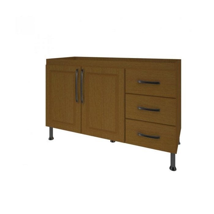 Balcão de Cozinha 2 Portas 3 Gavetas sem Tampo 120cm Nora Indekes Cerejeira