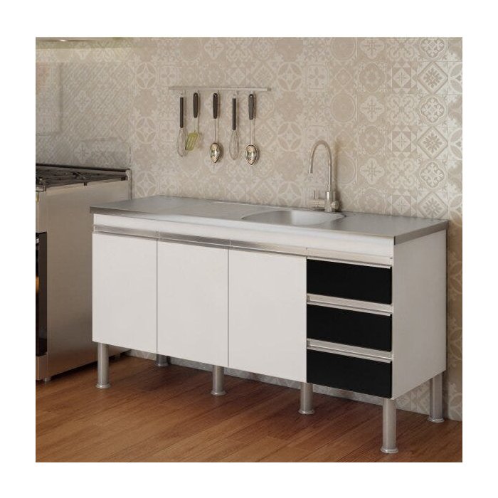 *** Tamanho:** as dimensões devem se encaixar no seu projeto de cozinha; *** Espaço interno:** quantidade de portas e gavetas para armazenar utensílios; *** Material:** um bom acabamento é durável e resistente (principalmente à umidade).