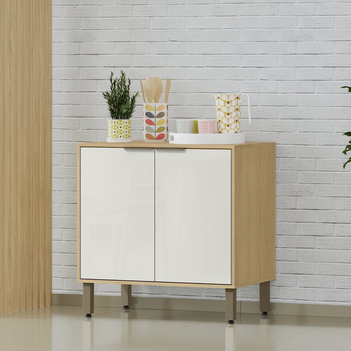 Balcão de Cozinha 80cm Glória 2 Portas Castanho/Off White