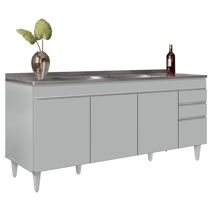 Em um cômodo que exige funcionalidade, o Balcão de Cozinha Com Pia Inox 180cm Dallas Cinza Claro é a escolha perfeita! Conheça os motivos!