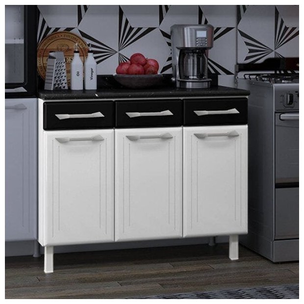 Balcão de Cozinha em Aço Triplo com Tampo Topázio Branco/Preto