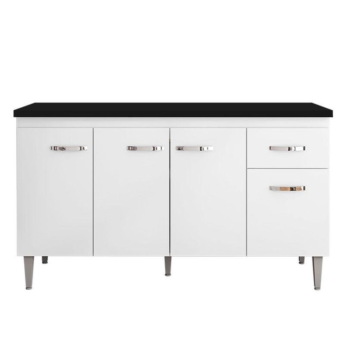 Balcão de Cozinha Gabriela Branco Flex com Tampo 150 cm Preto Fosco - AJL