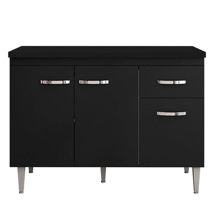 Balcão de Cozinha Gabriela com Tampo 120 cm Preto Fosco - AJL