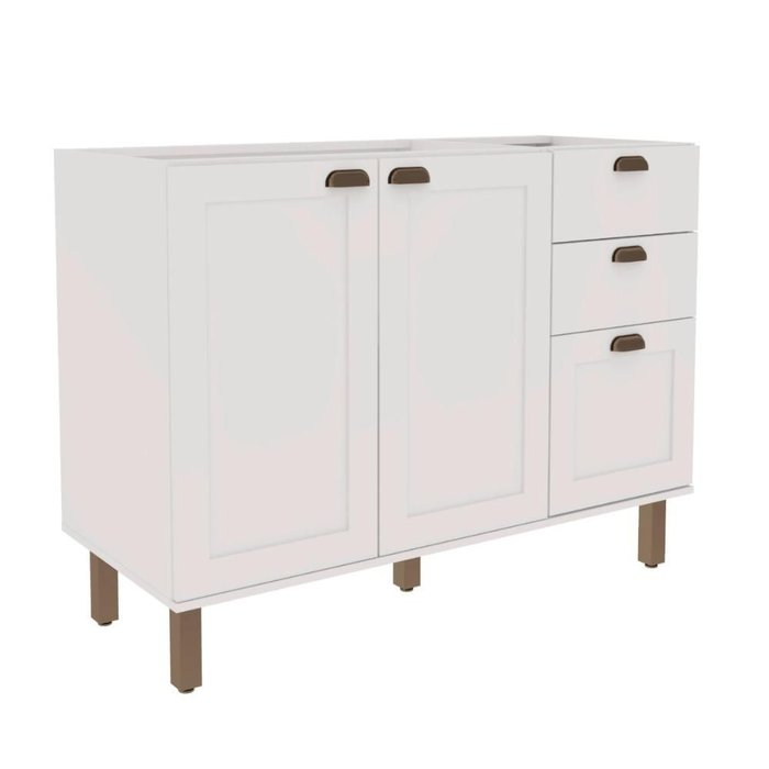 Balcão de Cozinha Genialflex Iluminata 3 Gavetas Branco Branco