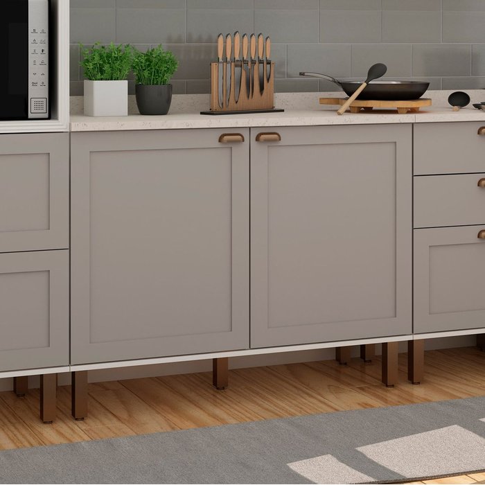 Balcão de Cozinha Genialflex Iluminata sem Tampo Branco Fendi Cinza