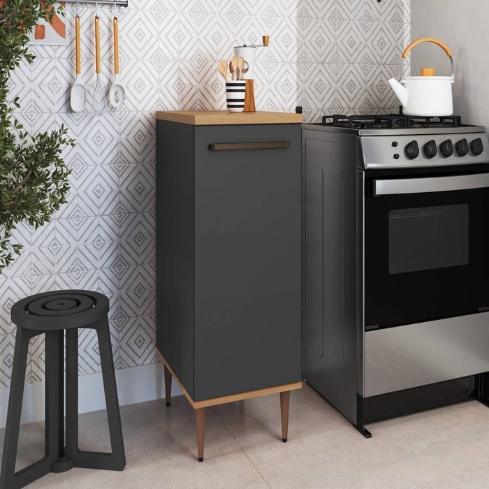 Balcão de Cozinha Largura Editável 25 a 39cm 1 Porta com Tampo Linha Isabelle Is1503ed Delmarco Frei Freijo/Grafite