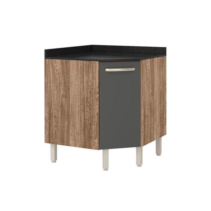 Balcão de Cozinha Canto Oblíquo Loá 1 Porta c/ Tampo 74,80cm Carvalho/Cinza - nicioli