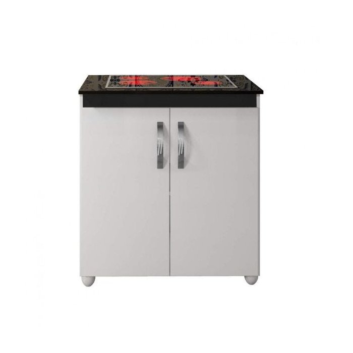 Balcão de Cozinha para Cooktop 2 Portas Fox 4 Bocas Arte Móveis Branco Branco Branco
