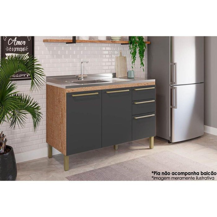 Balcão de Cozinha para Pia Nápoli Prime 3 Portas e 2 Gavetas 42,5cm Castanho/Chumbo - Ronipa
