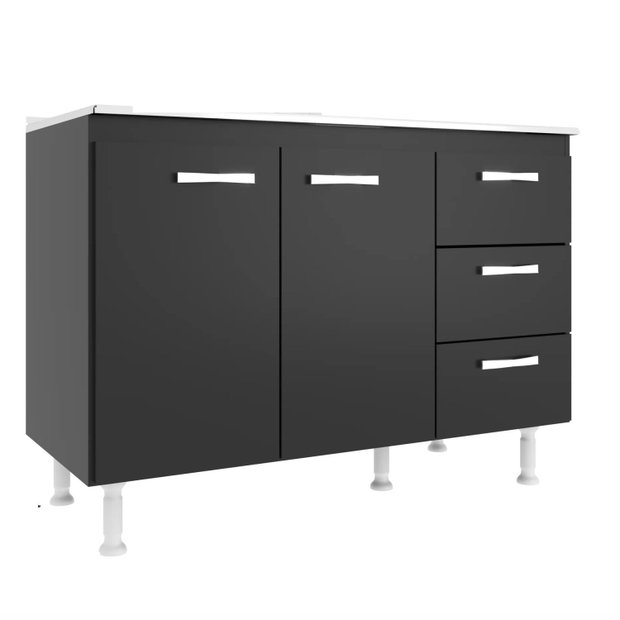 Balcão de Cozinha sem Pia e Tampo 2 Portas 3 Gavetas Carolina Preto