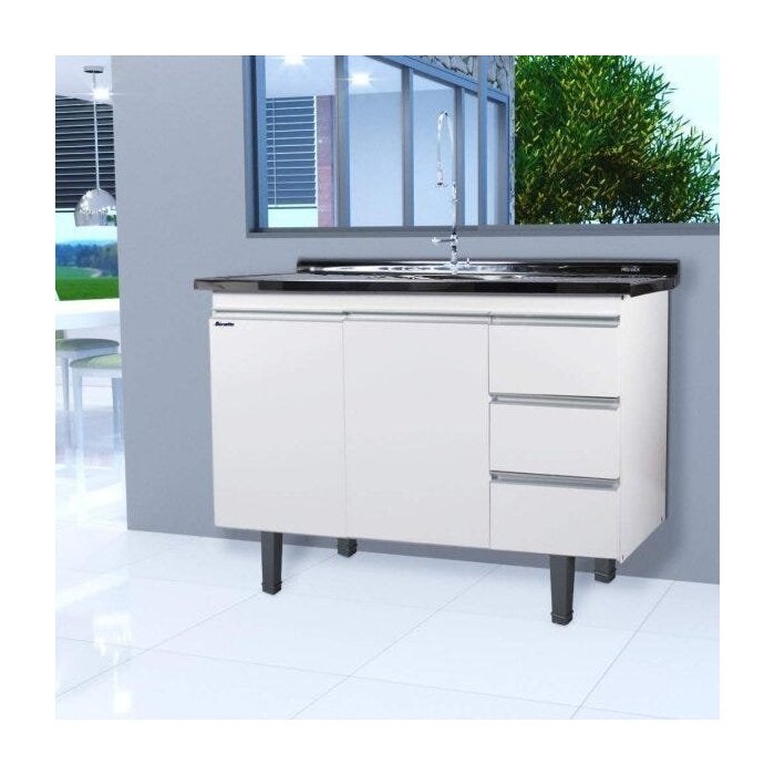 Balcão de Cozinha sem Tampo 2 Portas 3 Gavetas 120cm Montebello Móveis Bonatto Branco