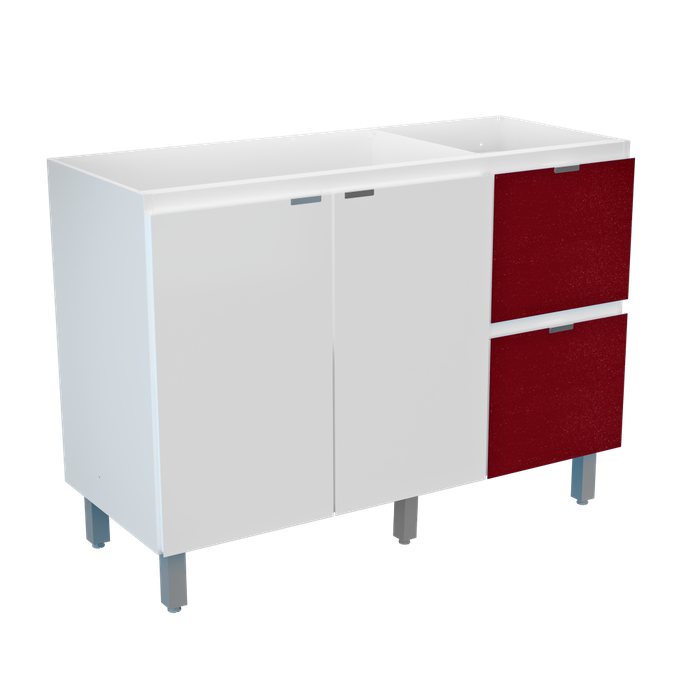 Balcão de Cozinha sem Tampo em Aço Quadria 3 Portas + 2 Gavetas Bicolor 120cm - Metalli Móveis Terra