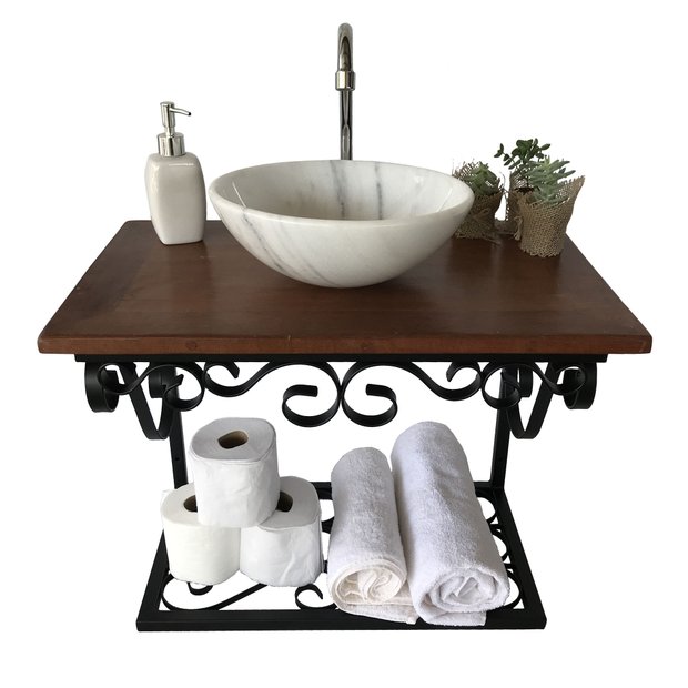 - Balcão de Ferro e Madeira Provençal para Banheiro Retrô Classico;