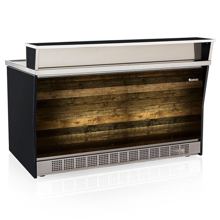 Balcão de Lanchonete Refrigerado GGLR-160 MD Madeira de Demolição Gelopar Tampo em Aço Inox 304 Adesivo Madeira Demolição