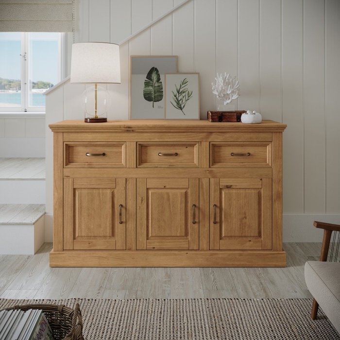 Balcão de Madeira 3 Portas e 3 Gavetas | Coleção England Branco/Natural