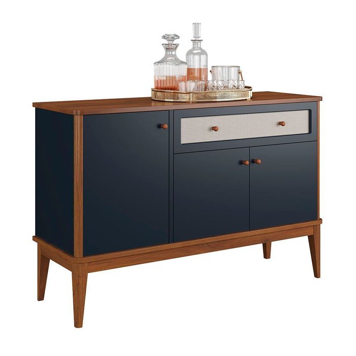 Balcão de Madeira Maciça 3 Portas e 1 Gaveta Viena Azul Petróleo Azul Petróleo