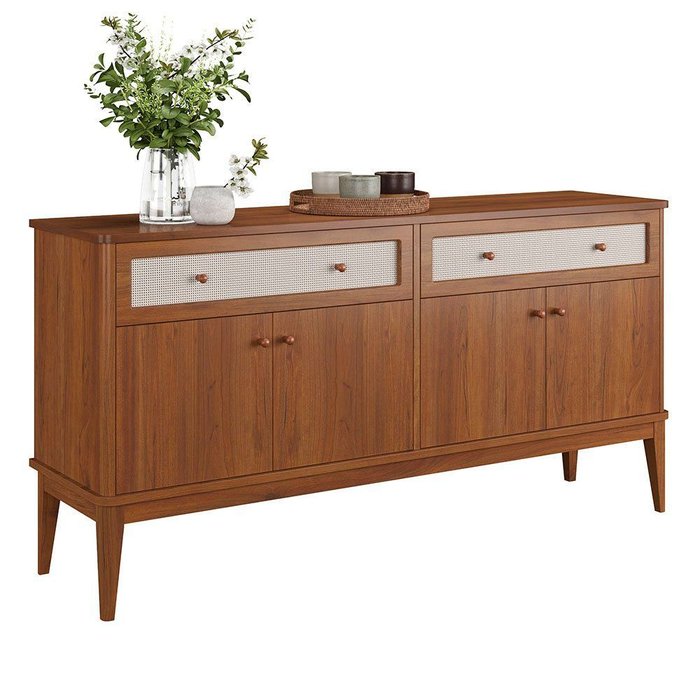 O Balcão Viena não é apenas um móvel funcional; ele é uma peça de destaque que valoriza o ambiente. As gavetas contam com um acabamento em telinha de Rattan, chamada também de Palhinha Natural, são fabricadas manualmente, o que confere a elas padrões únicos e um toque de sofisticação. Produzidas a partir de fibras naturais de celulose ou algodão, essas telinhas combinam durabilidade e elegância, mantendo sua autenticidade e aparência natural ao longo do tempo, enquanto os cantos arredondados do móvel promovem mais estilo e conforto. Projetado para otimizar o espaço na cozinha, este móvel versátil se adapta perfeitamente a diferentes ambientes, trazendo um toque de sofisticação que transforma qualquer espaço.