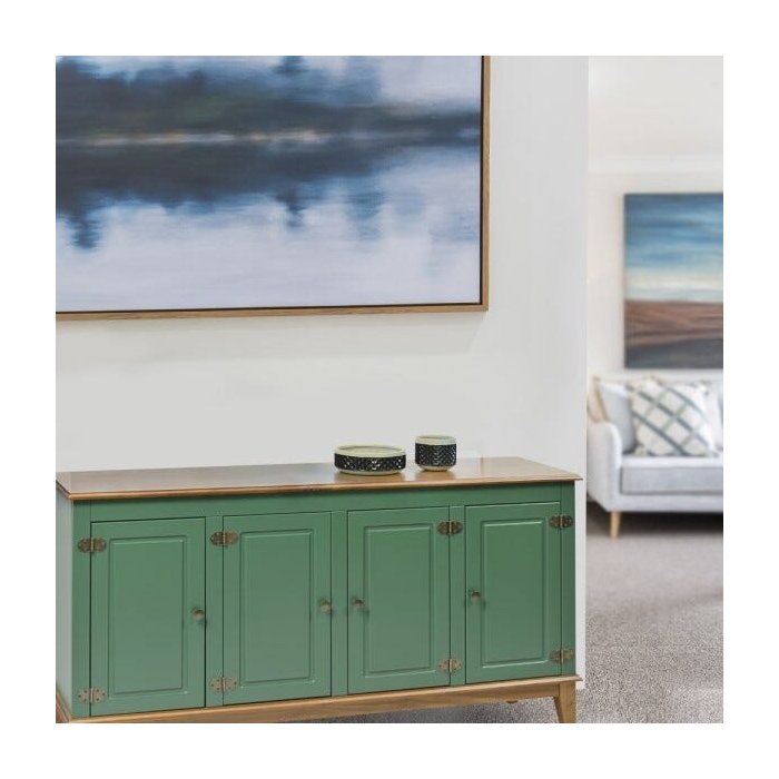 O Balcão de Madeira Maciça 4 Portas e 4 Gavetas - Verde da La Decora é completamente cheio de charme e elegância.