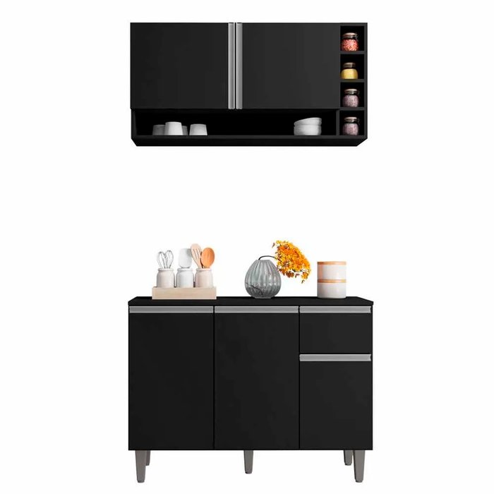 Balcão de Pia e Aéreo Cozinha Vanessa 105cm Preto sem Tampo Ajl Móveis Preto