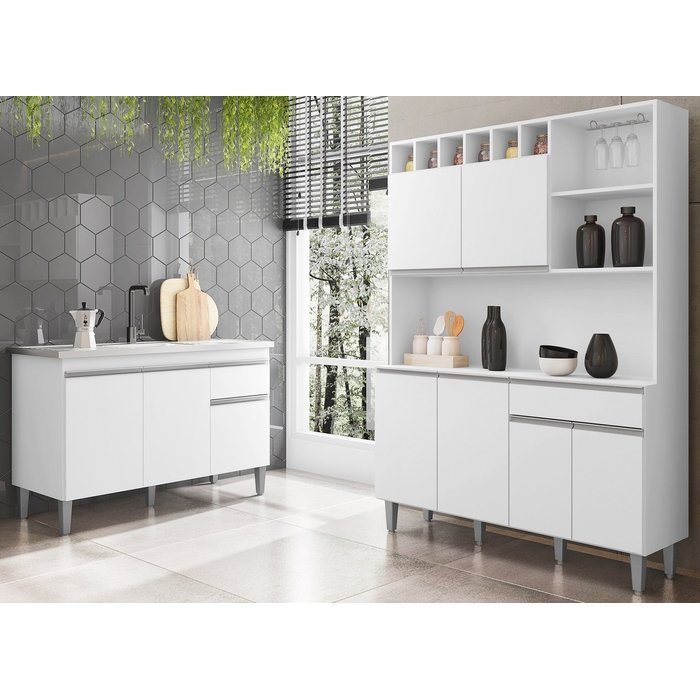 Balcão de Pia Tatiane 120m sem Tampo e Armário de Cozinha Alice Branco Ajl Branco