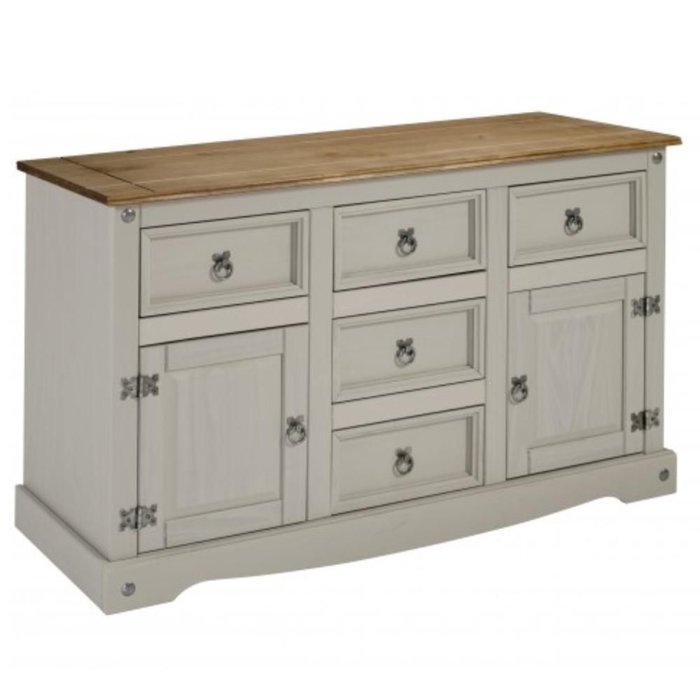 Balcão em Madeira com 2 Portas e 5 Gavetas Cinza Lavado
