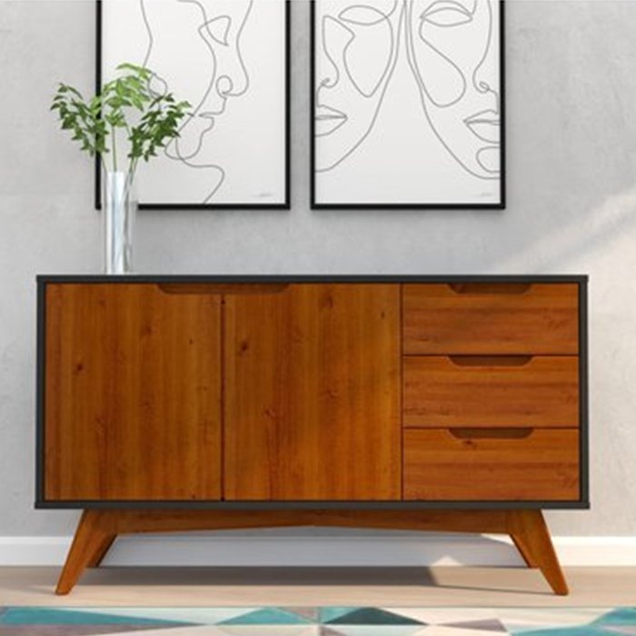 Balcão Escritório 2 Portas 3 Gavetas Club Madeira Maciça Preto/Garapa