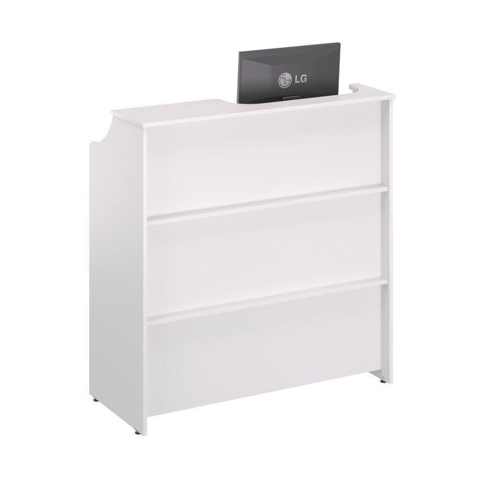 OBalcãotem um dsigner inovador e muito versátil para o atendimento ao publico. Em MDP BP ou EUCAPRINT 15 mm, acabamento de bordas em ABS. Tampo com Passa Fios Porta Teclado Porta CPU Gaveta com Corrediças Metálicas com Chave e Porta Cédulas, abaixo Porta Objetocom Prateleira. Pés com Niveladores de Altura Dimensões do produto: Altura: 108 cm Largura: 100 cm Profundidade: 45 cm Informações do produto: Gaveta: Sim, com chave e porta cédulas. Apoio para teclado: Sim. Prateleiras: Sim (1). Porta CPU: Sim Porta: Sim, com chave. Passa-Fio: Sim. Pés: Sim, com niveladores de altura. Porta Cédulas: Sim. Cor: Branco Material principal: MDP BP 15 mm Itens inclusos: 01 Balcão Caixa.