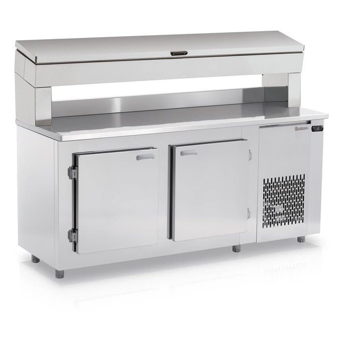 O Balcão Frigorífico Condimentaria é um apoio indispensável em cozinhas de hotéis, restaurantes, bares, clubes, lanchonetes, mercados, mercearias e outros estabelecimentos que necessitem de refrigeração à temperaturas de 0º a +7 ºC para alimentos não congelados, como frios, laticínios, bebidas, condimentos para o preparo de pizza e outros.