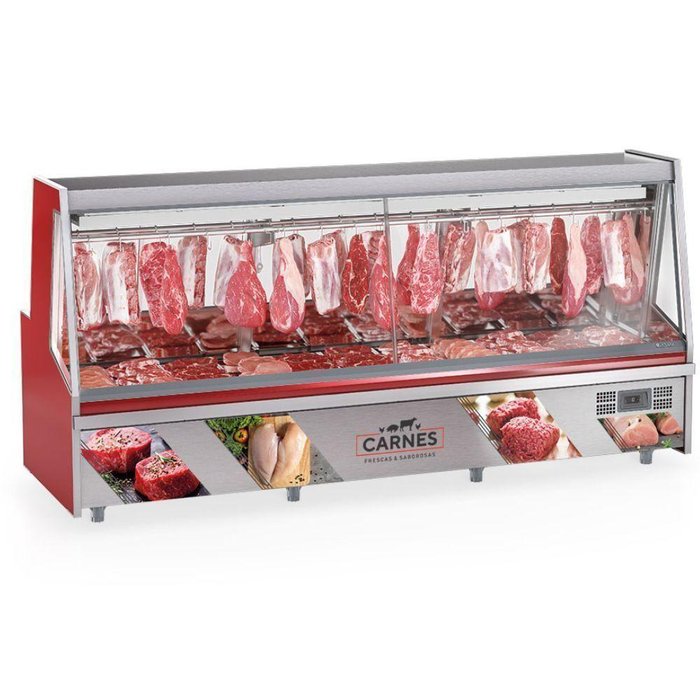 Balcão Frigorífico Premium Turino com Depósito Gatp300ad Gelopar Expositor de Carnes Vermelho