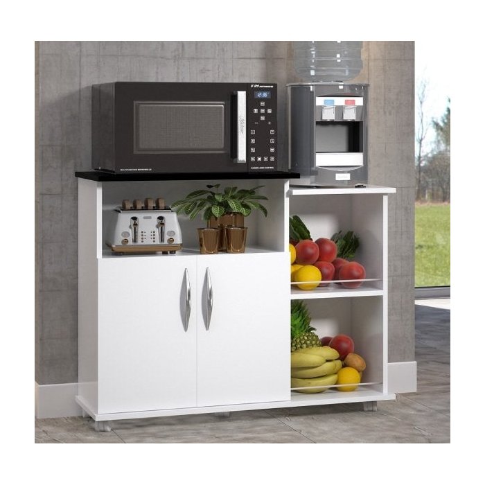 Balcão Fruteira Armário Preto para Armazenamento Cozinha Base Micro-Ondas