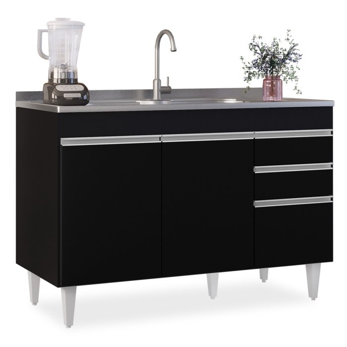 Balcão Gabinete 120cm 3 Portas 2 Gavetas Michigan Preto - Lumil Móveis